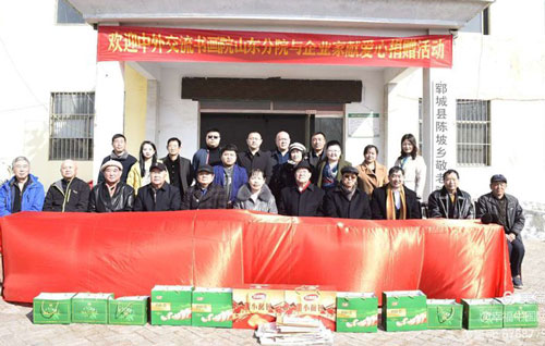 中外交流网消息:2月27日,中外交流书画院山东分院携手山东企业家走进山东省郓城县陈坡敬老院捐赠活动圆满举办。为弘扬尊老爱幼的优良传统,让全社会关爱孤寡老人,让每位老年人;老有所依,老有所养,老有所爱,让他们感受到社会大家庭的温暖,传递社会正能量,倡导社会精神文明建设,是我们每一位公民的责任和义务,所以,特举办本届送温暖,献爱心捐赠活动。本活动由中外交流书画院山东分院主办,禾一木业有限公司,恒顺纺织有限公司,美尔森木业有限公司,健祥纺织有限公司等爱心企业捐助。